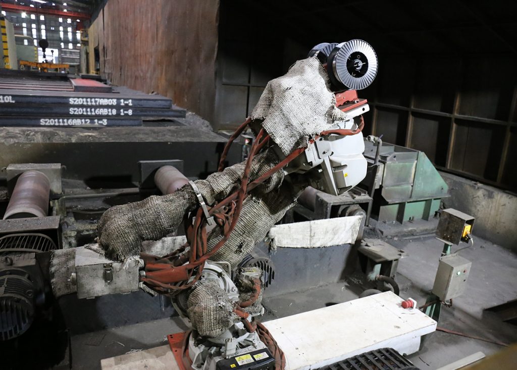 为顺应自动化智能生产潮流,紧跟工业4.0时代步伐,今年8、9月份,福建青拓实业股份有限公司精炼部连铸车间陆续迎来了三位自动“钢铁人”,分别是板坯结晶器自动加渣机、自动祛毛刺机、自动板坯喷号机,后期还将试用AOD自动拉渣机。