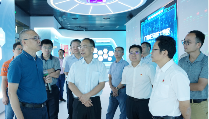 在多功能展厅,李积强重点介绍了公司生产经营、科技研发、工艺流程及未来发展规划等情况。听取相关情况介绍后,吴道闻充分肯定了广青科技近几年的发展成果,并为广青科技未来的发展提出了切实有效的建议。他指出:“十四五”时期是我国由全面建成小康社会向基本实现社会主义现代化迈进的关键时期,希望企业继续依托自身的竞争优势,持续实施创新驱动发展战略,做强做优做大产业,为推动广东省制造业高质量发展,科学编制并有效实施“十四五”规划贡献力量。