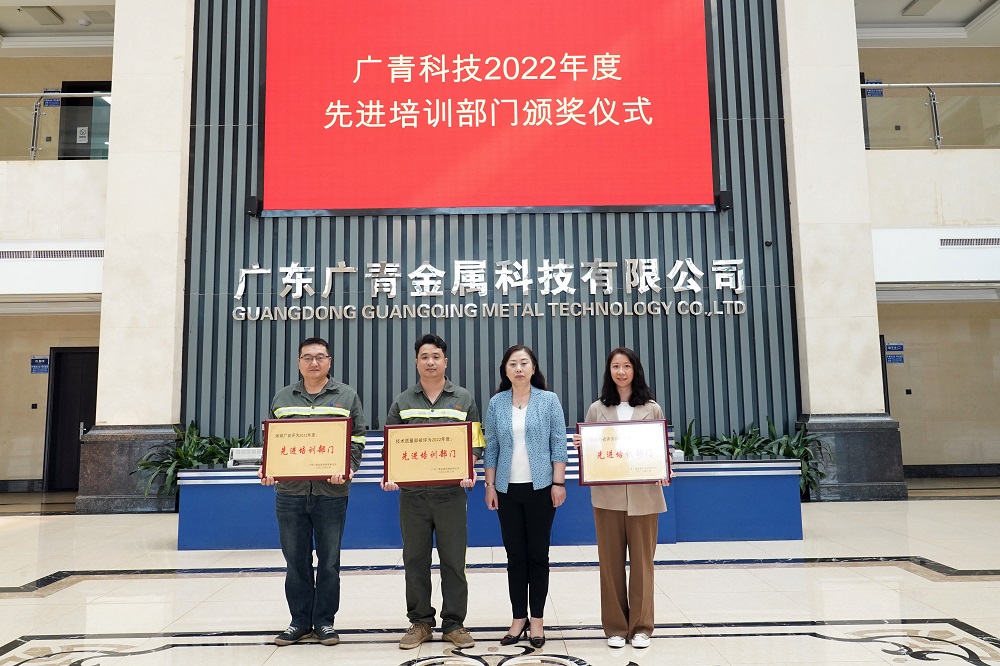 近日,广东广青金属科技有限公司举办了2022年度先进培训部门及优秀培训讲师颁奖仪式,对3个先进培训部门、5名优秀培训讲师予以表彰,对240名学习积极分子予以奖励。