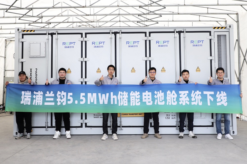 瑞浦兰钧5.5MWh储能电池舱系统成功下线